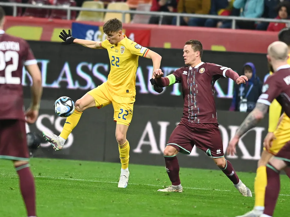Octavian Popescu in meciul de fotbal dintre Romania si Belarus, din cadrul preliminariilor Campionatului European 2024, desfasurat pe Arena Nationala, marti 28 martie 2023. © FOTO:Razvan Pasarica/SPORT PICTURES