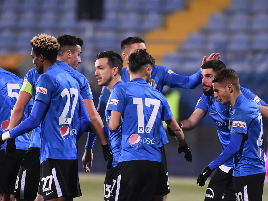 Bucurie a fotbalistilor de la Viitorul dupa un gol marcat cu Andrei Viorel Artean, Ely Ernesto Lopes Fernandes, Cosmin Gabriel Matei, Radu Stefanita Boboc si Alexandru Irinel Matan in meciul de fotbal dintre FC Viitorul Constanta si FCSB, din cadrul Ligii 1 Casa Pariurilor, desfasurat fara spectatori pe Stadionul Central al Academiei Gheorghe Hagi din Ovidiu, marti 19 ianuarie 2021. © FOTO:Razvan Pasarica/SPORT PICTURES