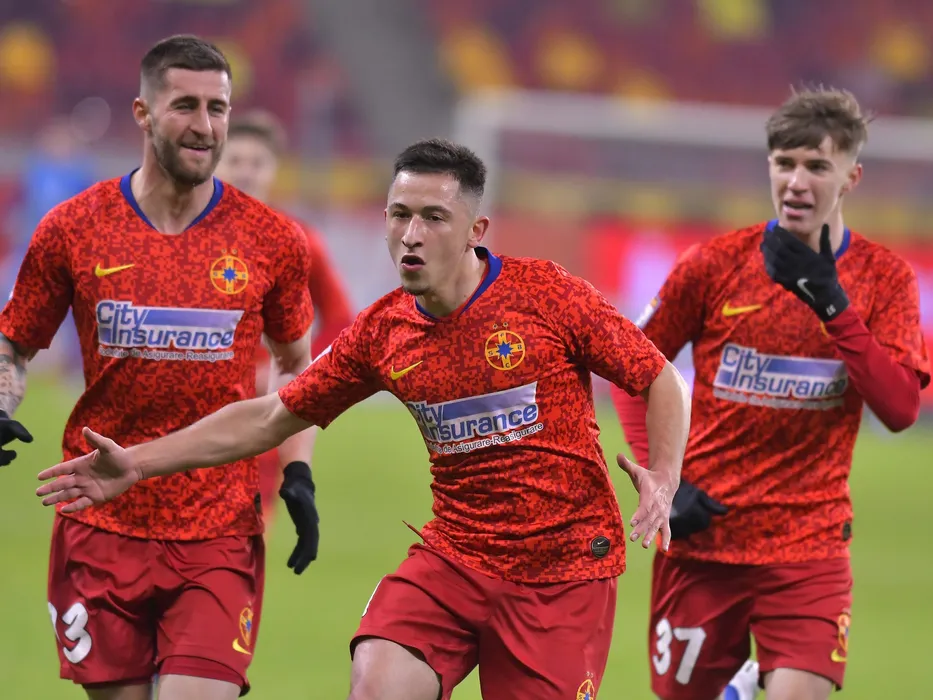 Olimpiu Vasile Morutan se bucura dupa un gol marcat alaturi de Ovidiu Marian Popescu si Octavian George Popescu in meciul de fotbal dintre FCSB si CSM Politehnica Iasi, contand pentru Liga 1 Casa Pariurilor, desfasurat fara spectatori pe Arena Nationala din Bucuresti, sambata 30 ianuarie 2021. © FOTO:Razvan Pasarica/SPORT PICTURES