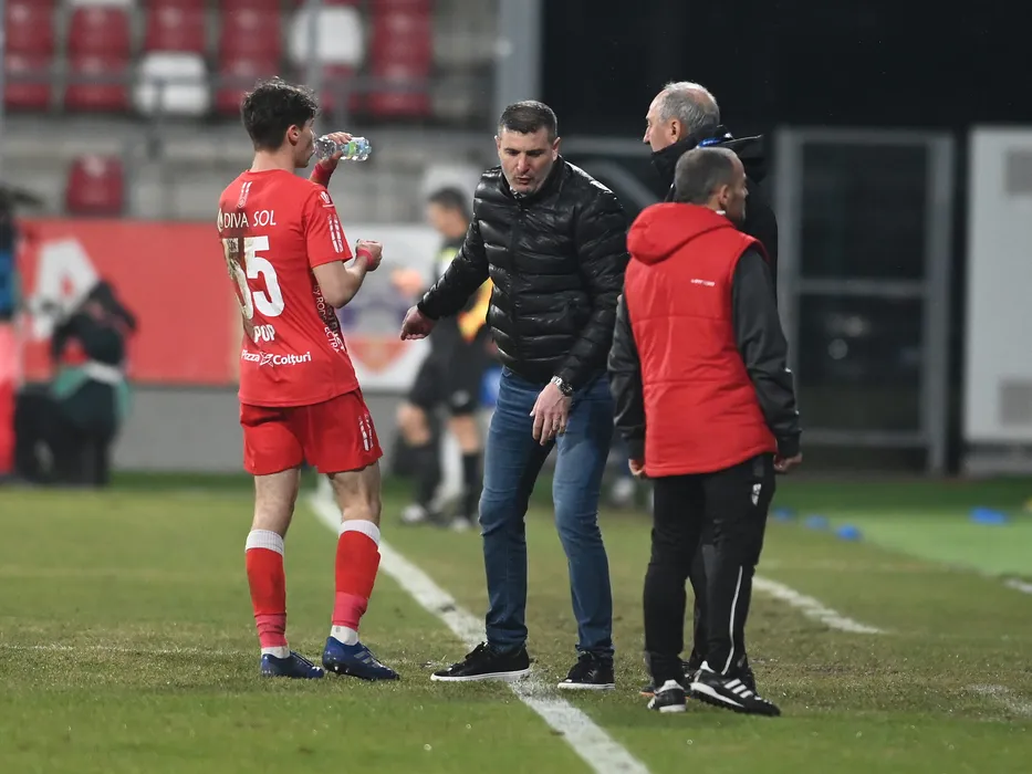 Laszlo Gyorgy Balint discuta cu Rares Mihai Pop in meciul de fotbal dintre UTA Arad si Farul Constanta, contand pentru Superliga Superbet, desfasurat pe Arena Francisc Neuman din Arad, vineri 24 februarie 2023. © FOTO:Razvan Pasarica/SPORT PICTURES