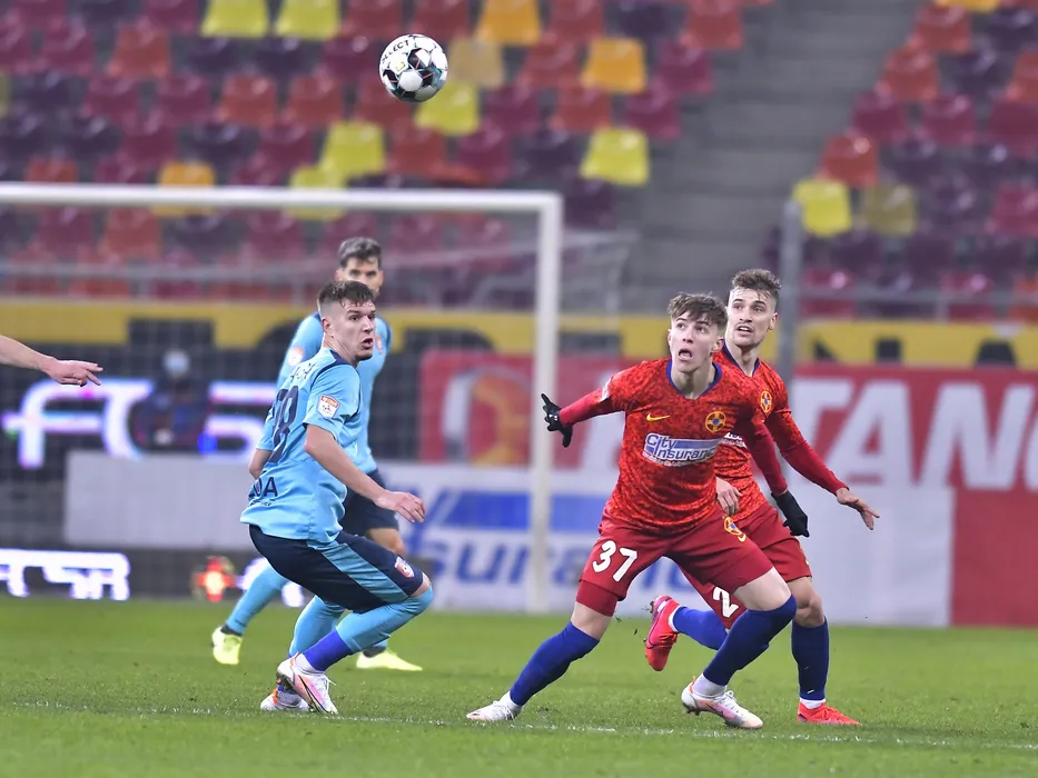 Tiberiu Ionut Capusa, Octavian George Popescu si Darius Dumitru Olaru in meciul de fotbal dintre FCSB si Chindia Targoviste, contand pentru Liga 1 Casa Pariurilor, desfasurat fara spectatori pe Arena Nationala din Bucuresti, sambata 20 februarie 2021. © FOTO:Razvan Pasarica/SPORT PICTURES