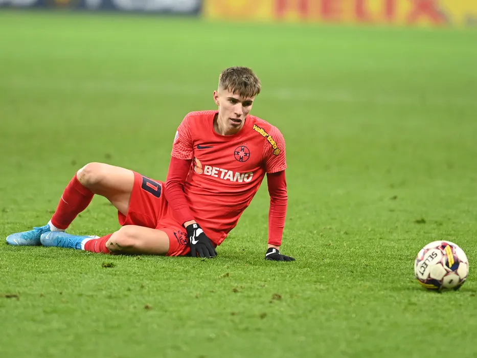 Octavian George Popescu la pamant alaturi de o minge in meciul de fotbal dintre FCSB si FC Botosani, contand pentru Superliga Superbet, desfasurat pe Arena Nationala din Bucuresti, luni 19 decembrie 2022. © FOTO:Razvan Pasarica/SPORT PICTURES