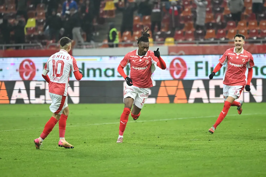 Mamoudou Karamoko se bucură dupa un gol marcat alături de Raul Marian Oprut si Catalin Ionut Cirjan in meciul de fotbal dintre Dinamo Bucuresti si Universitatea Cluj, din cadrul Superligii Superbet, desfasurat pe Arena Nationala din Bucuresti, duminica 18 ianuarie 2026. © FOTO:Razvan Pasarica/SPORT PICTURES