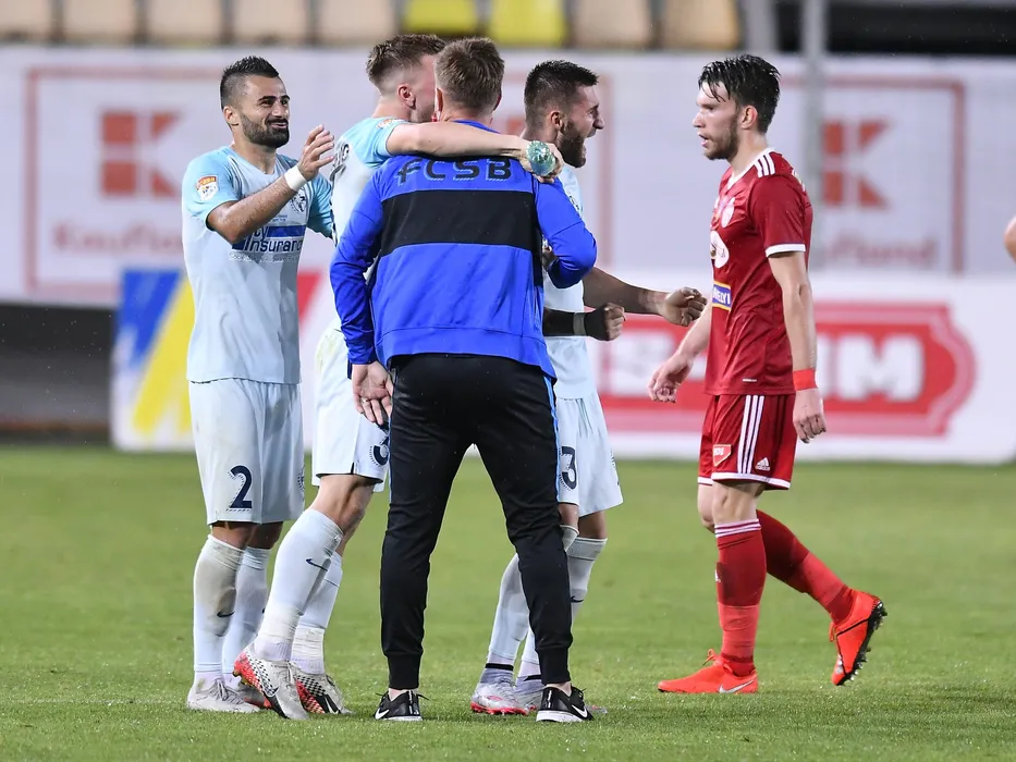 Bucurie stelista cu Valentin Cretu si Ovidiu Popescu dupa meciul de fotbal dintre FCSB si Sepsi OSK Sfantu Gheorghe, finala Cupei Romaniei, disputat fara spectatori pe Stadionul Ilie Oana din Ploiesti, miercuri 22 iulie 2020. © FOTO:Razvan Pasarica/SPORT PICTURES