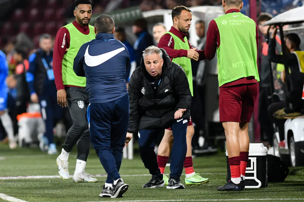 Dan Petrescu, antrenorul echipei CFR Cluj, urmareste meciul de fotbal contra formatiei CS Universitatea Craiova din etapa a 9- a a play-off-ului Ligii 1, disputat pe stadionul Dr. Constantin Radulescu, duminica, 15 mai 2022. FLAVIU BUBOI / MEDIAFAX FOTO