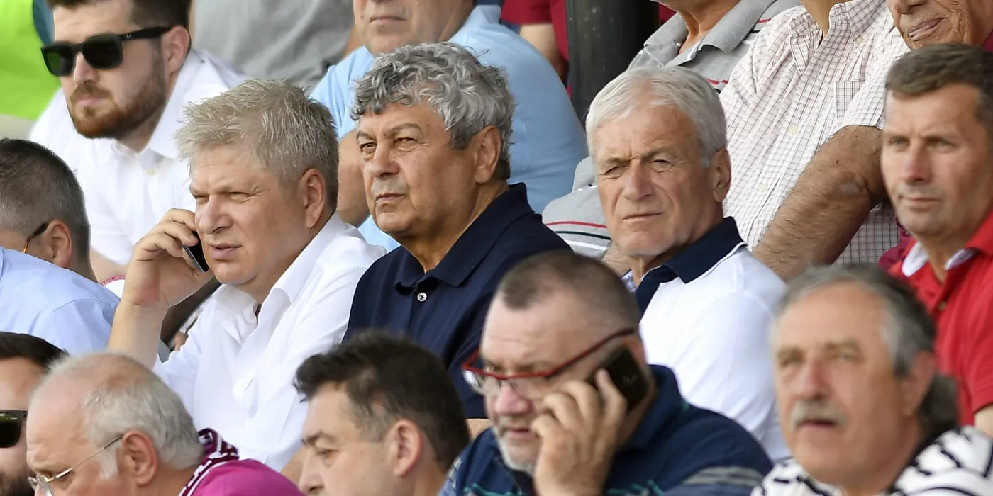 Daniel Tudorache,Mircea Lucescu,Lita Dumitru,Rica Raducanu si Adrian Bindea in tribuna la meciul de fotbal dintre Rapid Bucuresti si Axiopolis Cernavoda, din cadrul Ligii a-3-a, desfasurat pe Stadionul Regie-Sportul Studentesc din Bucuresti, duminica 26 mai 2019. © FOTO:Razvan Pasarica/SPORT PICTURES