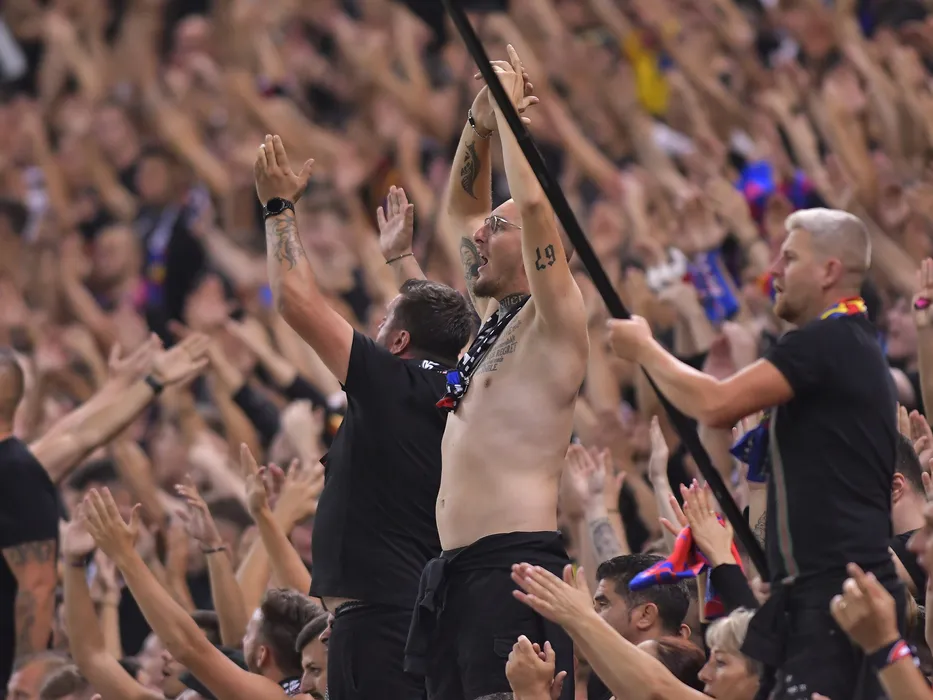Suporteri stelisti in peluza la meciul de fotbal dintre FCSB si Dinamo Bucuresti, contand pentru Liga 1 Casa Pariurilor, desfasurat pe Arena Nationala din Bucuresti, duminica 12 septembrie 2021. © FOTO:Razvan Pasarica/SPORT PICTURES