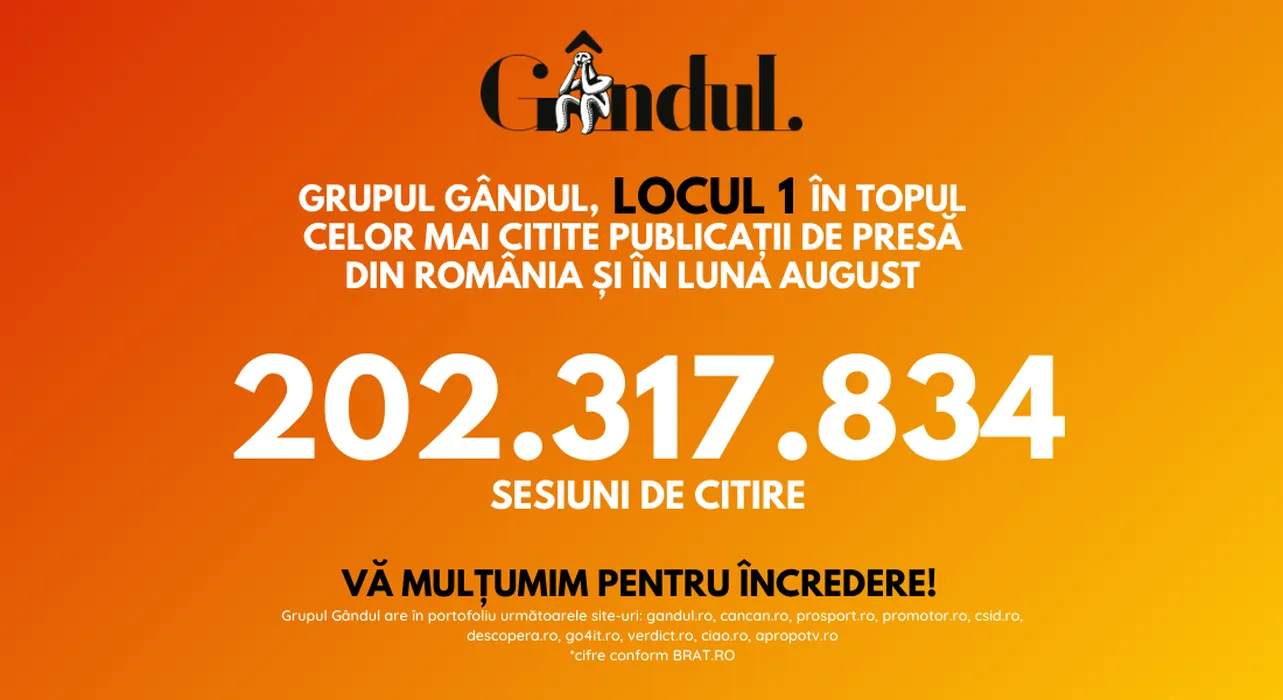 OFICIAL. Grupul Gândul, compania de presă cu cele mai citite publicații din România și în luna august