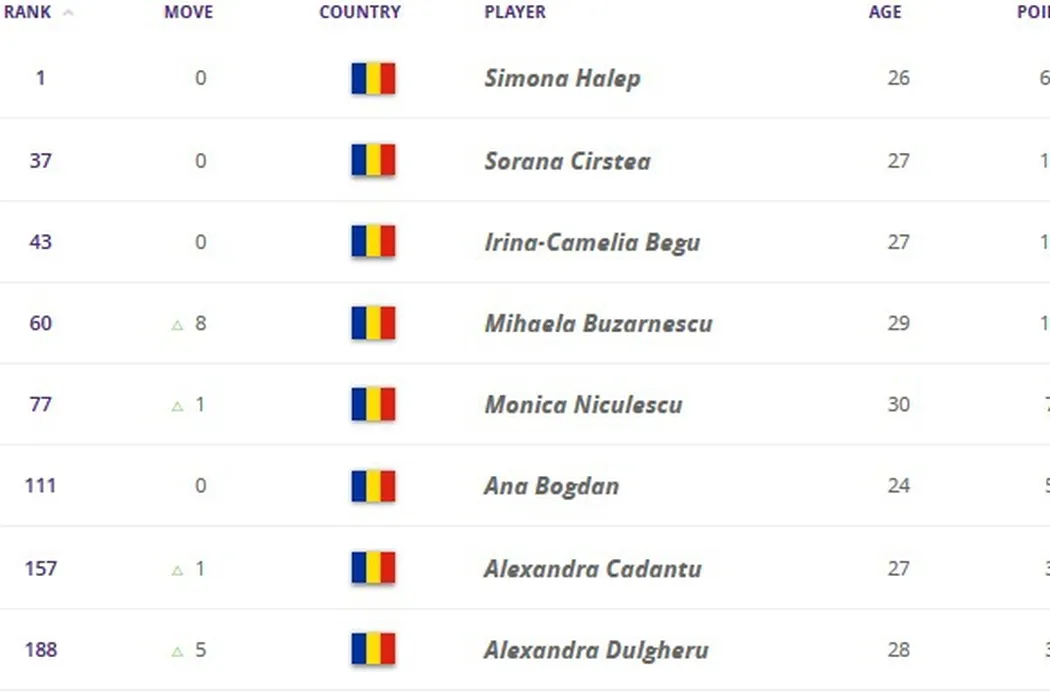 OFICIAL | Halep e prima în lume pentru a 7-a săptămână la rând, Buzărnescu intră în premieră în Top 60 WTA. Tinerele Cristian și Bulgaru ating și ele un nou maxim al carierei în clasament