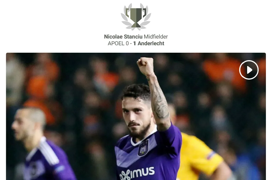 OFICIAL | Performanță formidabilă reușită de Stanciu cu Anderlecht! Românul a fost votat jucătorul săptămânii în Europa League