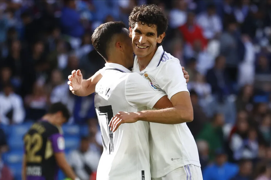 Real Madrid v Real Valladolid, La Liga 2022-2023, date 27. Football, Santiago Bernabeu Stadium, Madrid, Spain - 02 Apr 2023,Image: 767039617, License: Rights-managed, Restrictions: EDITORIAL USE ONLY No use with unauthorised audio, video, data, fixture lists (outside the EU), club/league logos or "live" services. Online in-match use limited to 45 images (+15 in extra time). No use to emulate moving images. No use in betting, games or, Model Release: no