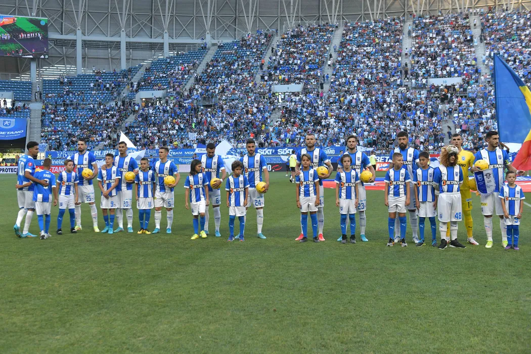 Fotbalistii craioveni la startul meciului de fotbal dintre Universitatea Craiova si Rapid Bucuresti, contand pentru Superliga Superbet, desfasurat pe Stadionul Ion Oblemenco din Craiova, duminica 31 iulie 2022. © FOTO:Razvan Pasarica/SPORT PICTURES