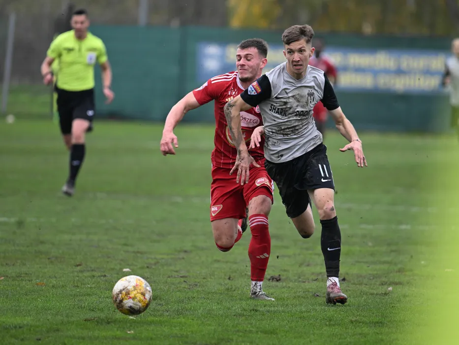 Darius Adrian Oroian si Alexandru Iamandache in meciul de fotbal dintre CS Afumati si Sepsi OSK Sfantu Gheorghe, din cadrul Ligii a-2-a Casa Pariurilor, desfasurat pe Stadionul comunal din Afumati, duminica 23 noiembrie 2025. © FOTO:Razvan Pasarica/SPORT PICTURES