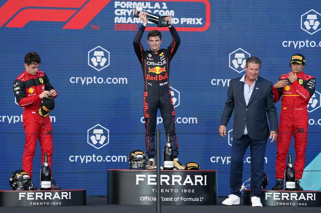 Winner Max Verstappen 1 (NED), HONDA Red Bull Racing RB18 on the podium