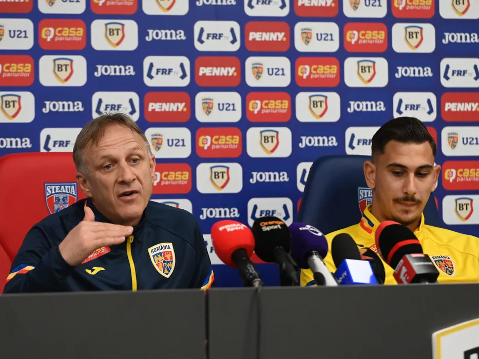 Emil Sandoi si Jovan Markovic la conferinta de presa a Romaniei U21 de dinaintea meciului amical impotriva Portugaliei U21, desfasurata la Stadionul Steaua din Bucuresti, joi 23 martie 2023. © FOTO:Razvan Pasarica/SPORT PICTURES