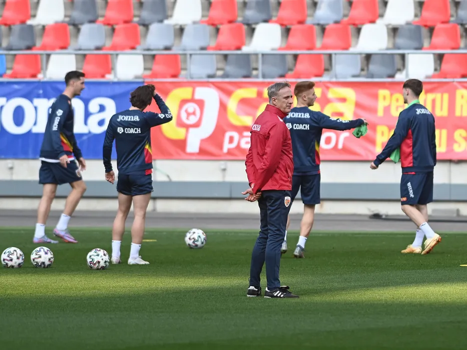 Fotbalistii tricolori alaturi de selectionerul Emil Sandoi la antrenamentul oficial al Romaniei U21 de dinaintea meciului amical impotriva Portugaliei U21, desfasurat la Stadionul Steaua din Bucuresti, joi 23 martie 2023. © FOTO:Razvan Pasarica/SPORT PICTURES