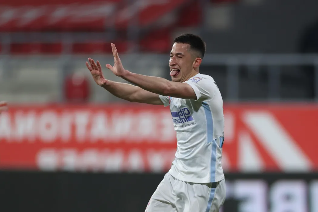 Olimpiu Morutan, de la FCSB, reactioneaza dupa ce a inscris un gol in meciul de fotbal din etapa a XXVII-a a Ligii I dintre UTA Arad si FCSB, de pe stadionul Francisc Neuman din Arad, sambata, 13 martie 2021. SEBASTIAN TATARU / MEDIAFAX FOTO