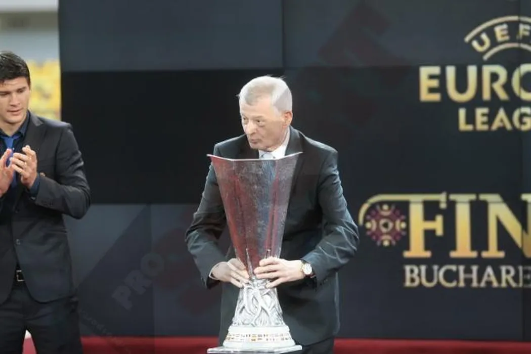 Oprescu a primit trofeul Europa League de la Platini:** „Aveți un stadion fabulos” / „Gazonul va fi funcționabil” FOTO