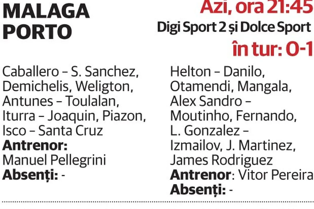 Optimi de finală UCL:** Malaga – Porto 2-0! Spaniolii se califică în sferturile de finală