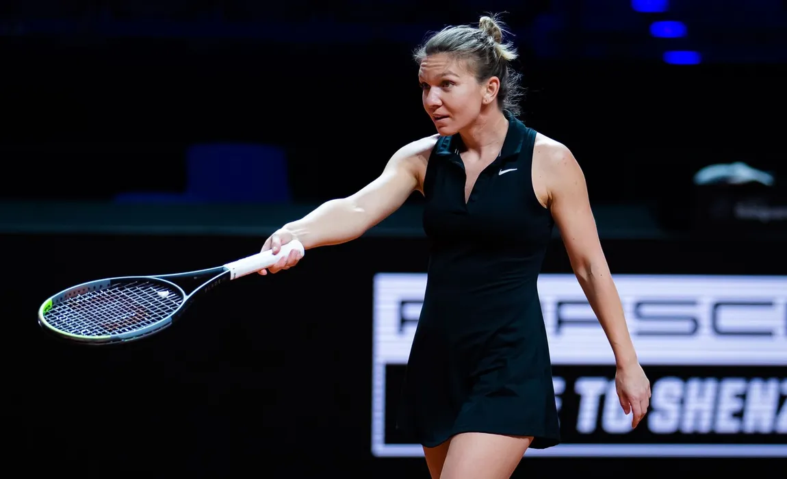 Simona Halep of Romania in action during the semi-final of the 2021 Porsche Tennis Grand Prix WTA 500 tournament