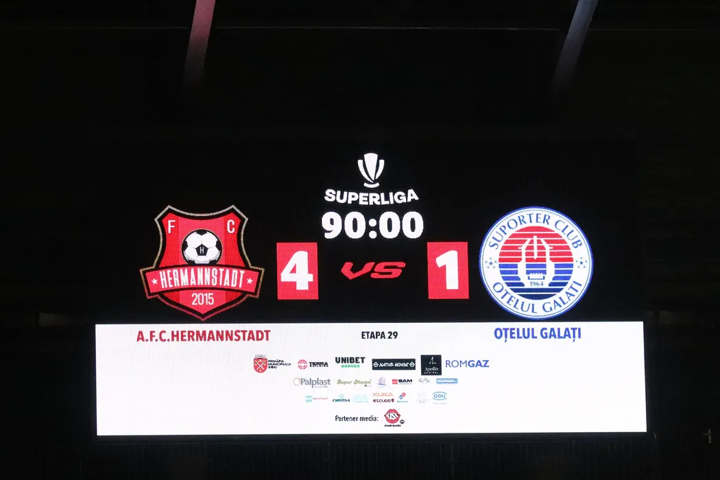 Rezultat final în meciul de fotbal dintre AFC Hermannstadt Sibiu și SC Oțelul Galați, contând pentru Superliga Superbet, desfășurat pe Stadionul Municipal din Sibiu, sâmbătă 2 martie 2024. © FOTO: Valentin MACREA/SPORT PICTURES