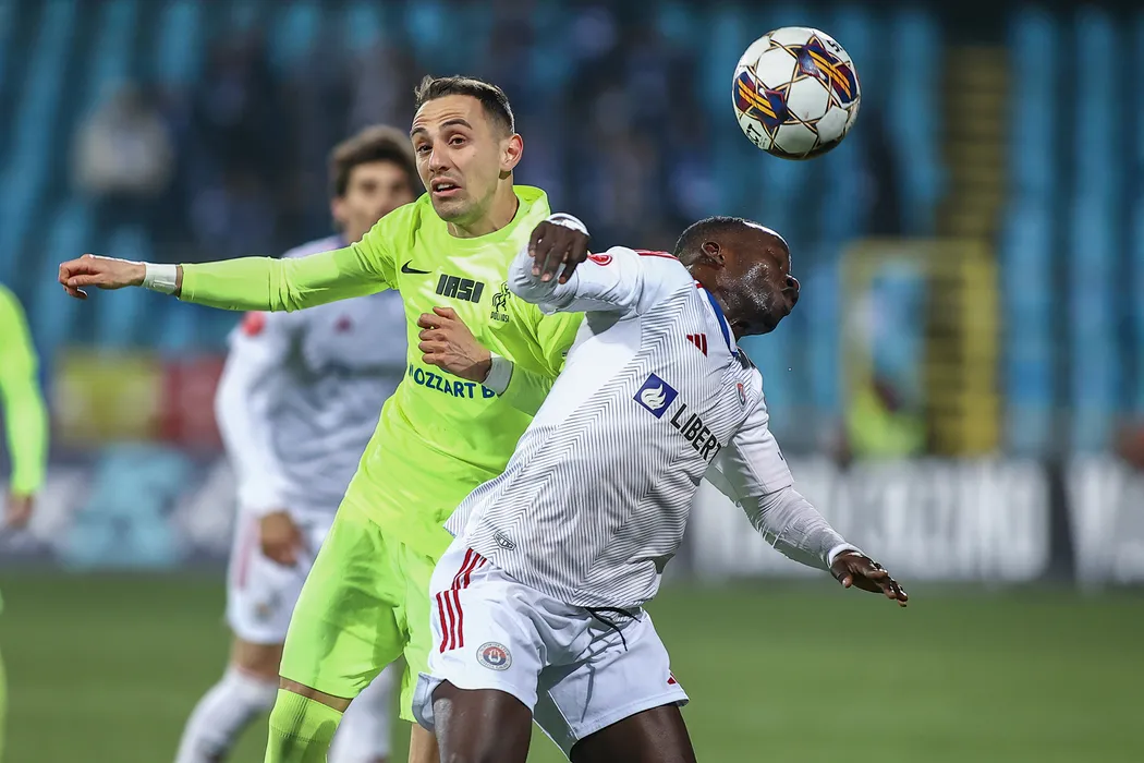 /Todor Todoroski și Aly Malle în meciul de fotbal dintre SC Oțelul Galați si Poli Iași, contând pentru Superliga Superbet, desfășurat pe Stadionul Oțelul din Galați, luni 11 martie 2024. © FOTO: Sorin PANĂ/SPORT PICTURES
