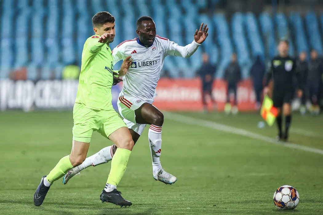 Julian Augusto Marchioni Garobbio și Aly Malle în meciul de fotbal dintre SC Oțelul Galați si Poli Iași, contând pentru Superliga Superbet, desfășurat pe Stadionul Oțelul din Galați, luni 11 martie 2024. © FOTO: Sorin PANĂ/SPORT PICTURES