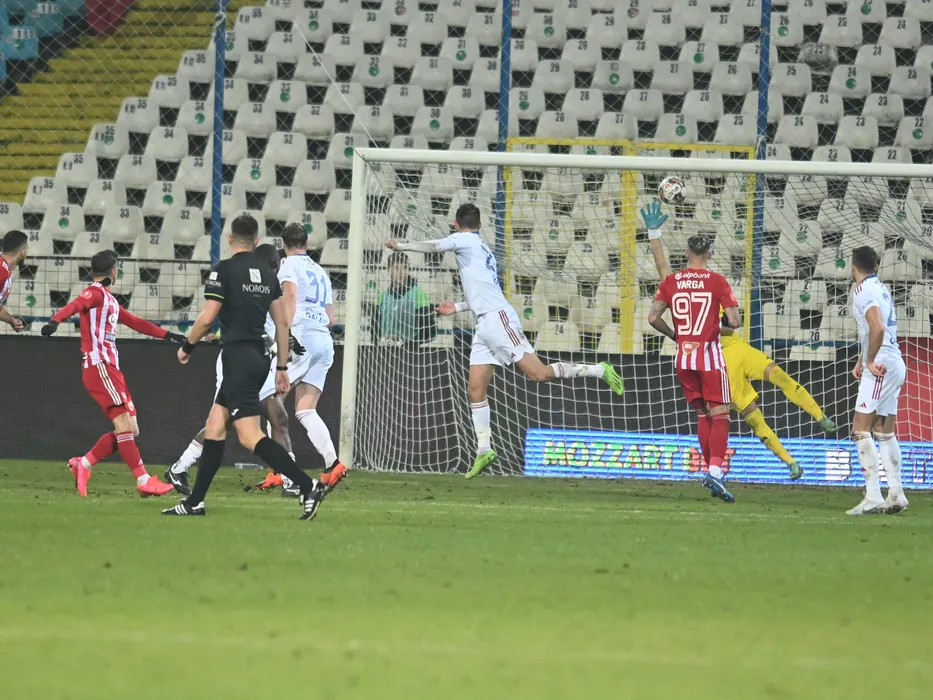 Marius Stefanescu marcheaza un gol in poarta lui Cosmin Andrei Dur Bozoanca in meciul de fotbal dintre Otelul Galati si Sepsi OSK Sfantu Gheorghe, din cadrul Superligii Superbet, desfasurat pe Stadionul Otelul din Galati, marti 12 decembrie 2023. © FOTO:Razvan Pasarica/SPORT PICTURES