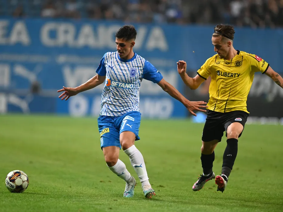 Florin Gheorghe Borta si Stefan Bodisteanu in meciul de fotbal dintre Universitatea Craiova si Otelul Galati, contand pentru Superliga Superbet, desfasurat pe Stadionul Ion Oblemenco din Craiova, luni 24 iulie 2023. © FOTO:Razvan Pasarica/SPORT PICTURES
