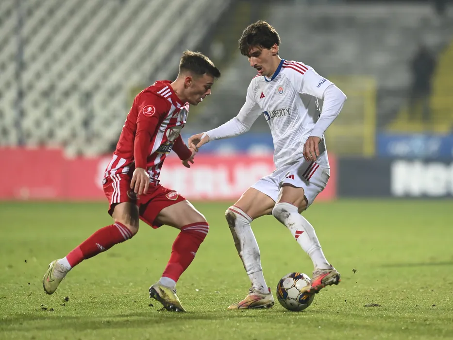 Darius Adrian Oroian si Miguel Angelo Gomes Silva in meciul de fotbal dintre Otelul Galati si Sepsi OSK Sfantu Gheorghe, din cadrul Superligii Superbet, desfasurat pe Stadionul Otelul din Galati, marti 12 decembrie 2023. © FOTO:Razvan Pasarica/SPORT PICTURES