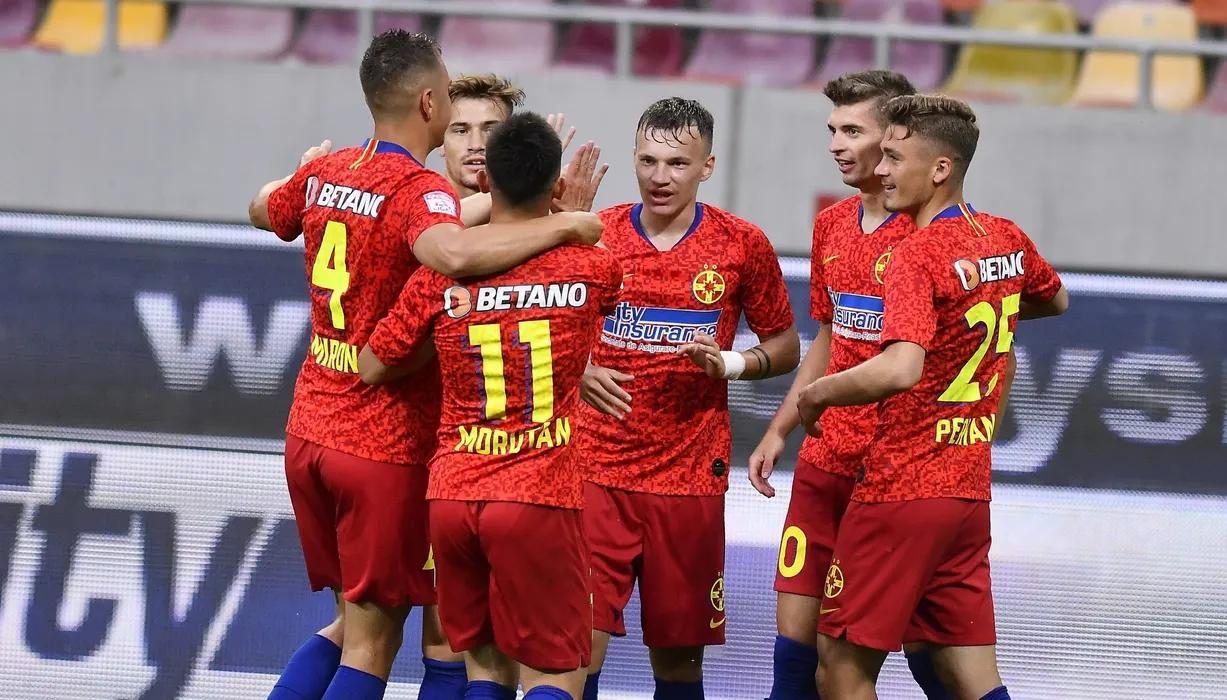 Bucurie stelista cu Ovidiu Ioan Perianu, Darius Olaru, Grigoras Alexandru Pantea si Florin Tanase in meciul de fotbal dintre FCSB si Gaz Metan Medias, contand pentru play-off-ul Ligii 1 Casa Pariurilor, disputat fara spectatori pe Arena Nationala din Bucuresti, duminica 21 iunie 2020. © FOTO:Razvan Pasarica/SPORT PICTURES