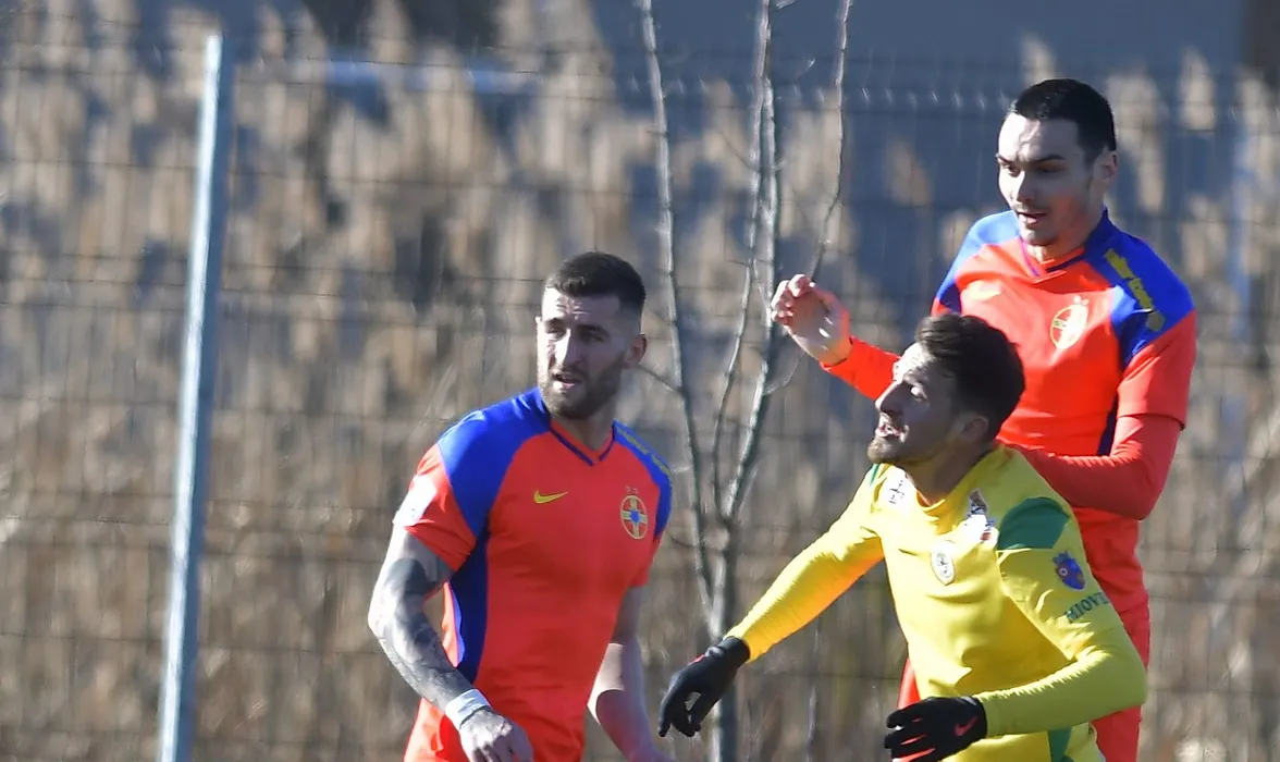 Ovidiu Marian Popescu, Davide Massaro si Lucian Mihai Dumitriu in meciul amical de fotbal dintre FCSB si CS Mioveni, desfasurat la Centrul National de Fotbal de la Buftea, sambata 15 ianuarie 2022. © FOTO:Razvan Pasarica/SPORT PICTURES