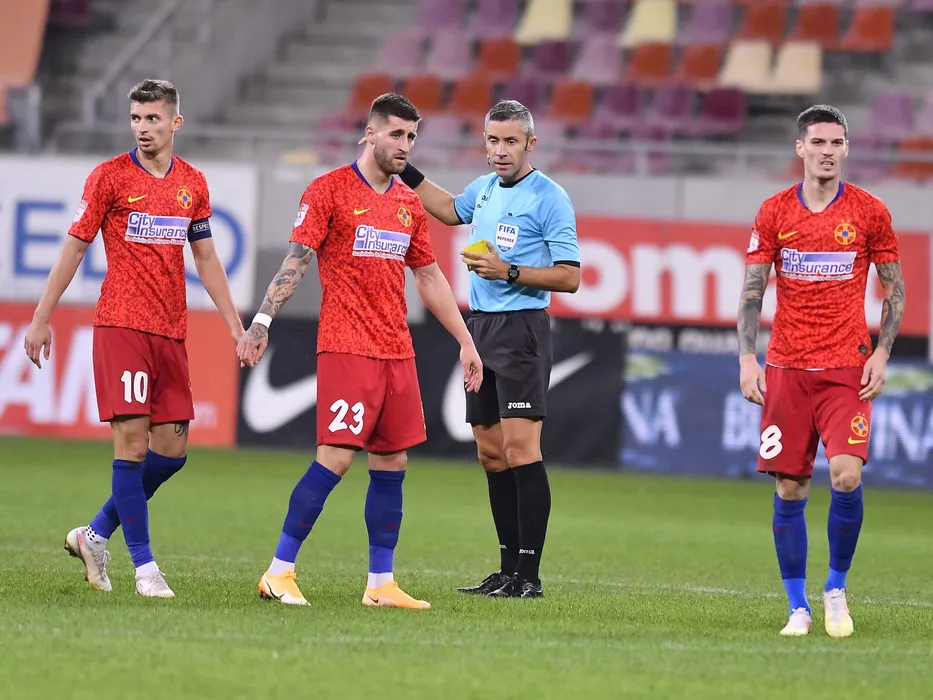 Arbitrul central Radu Petrescu alaturi de Florin Lucian Tanase, Ovidiu Marian Popescu si Dennis Man in meciul de fotbal dintre FCSB si Dinamo Bucuresti, contand pentru Liga 1 Casa Pariurilor, desfasurat fara spectatori pe Arena Nationala din Bucuresti, sambata 3 octombrie 2020. © FOTO:Razvan Pasarica/SPORT PICTURES