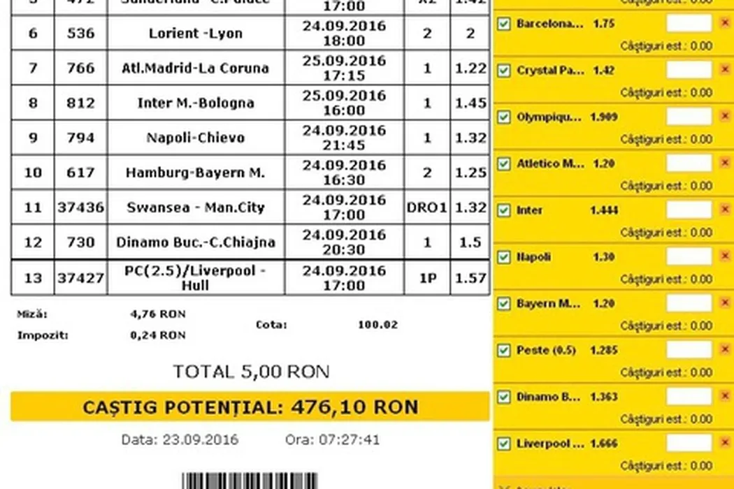 (P) Bilet la pariuri cu cota 100 pentru 24-25 septembrie propus de experții PariuriX