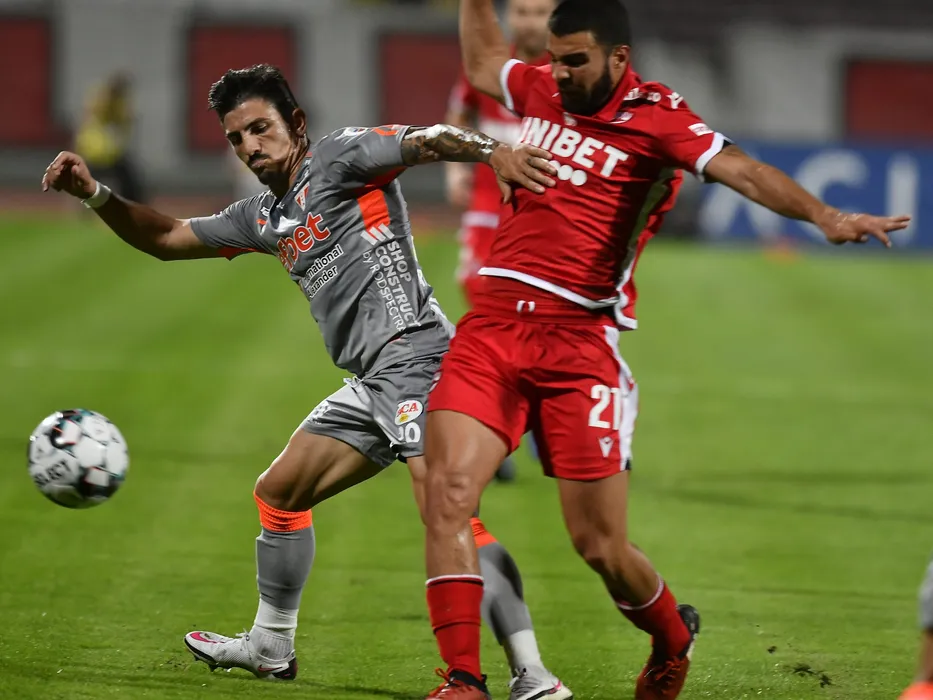 Simo Roumpoulakou si Alexander David Gonzalez Sibulo in meciul de fotbal dintre Dinamo Bucuresti si UTA Arad, contand pentru Liga 1 Casa Pariurilor, desfasurat fara spectatori pe Stadionul Dinamo din Bucuresti, luni 28 septembrie 2020. © FOTO:Razvan Pasarica/SPORT PICTURES