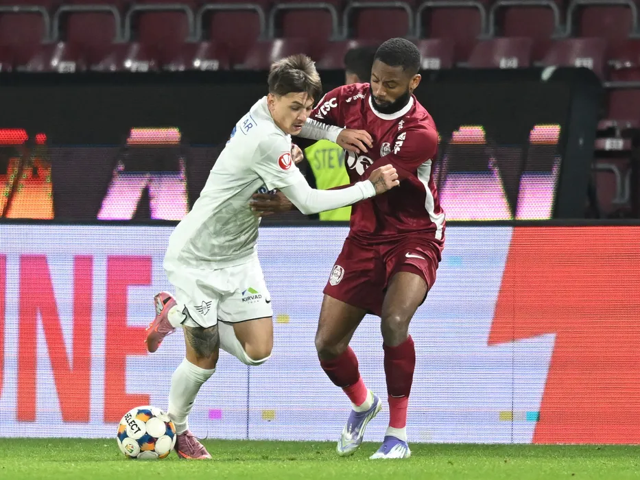 Razvan Andrei Tanasa si Marcus Regis Coco in meciul de fotbal dintre FC CFR 1907 Cluj si FC Farul Constanta, contand pentru Superliga Superbet, desfasurat pe Stadionul Dr.Constantin Radulescu din Cluj-Napoca, sambata 25 octombrie 2025. © FOTO:Flaviu Buboi/SPORT PICTURES