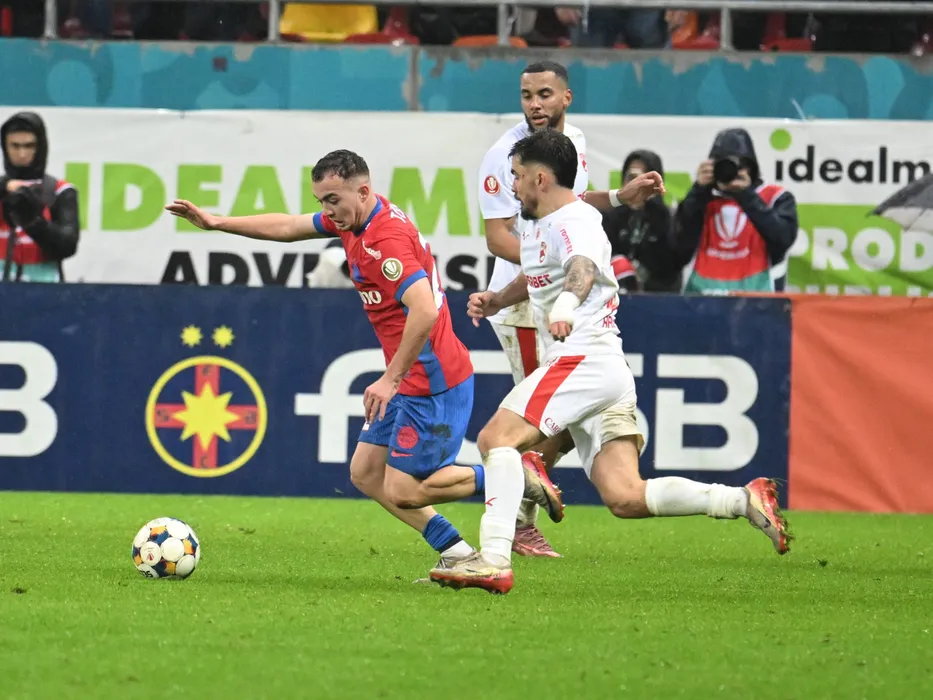 Mihai Vlăduț Toma, Maxime James Sivis si Danniel Charles Armstrong in meciul dintre FCSB si Dinamo Bucuresti, contand pentru Superliga Superbet, desfasurat pe Arena Nationala din Bucuresti, sambata 6 decembrie 2025. © FOTO:Razvan Pasarica/SPORT PICTURES