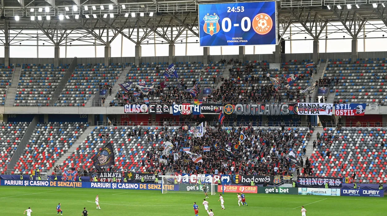 Galeria stelista alaturi de tabela de marcaj la meciul de fotbal dintre CSA Steaua Bucuresti si CSM Slatina, contand pentru Liga a-2-a Casa Pariurilor, desfasurat pe Stadionul Steaua-Ghencea din Bucuresti, luni 25 septembrie 2023. © FOTO:Razvan Pasarica/SPORT PICTURES