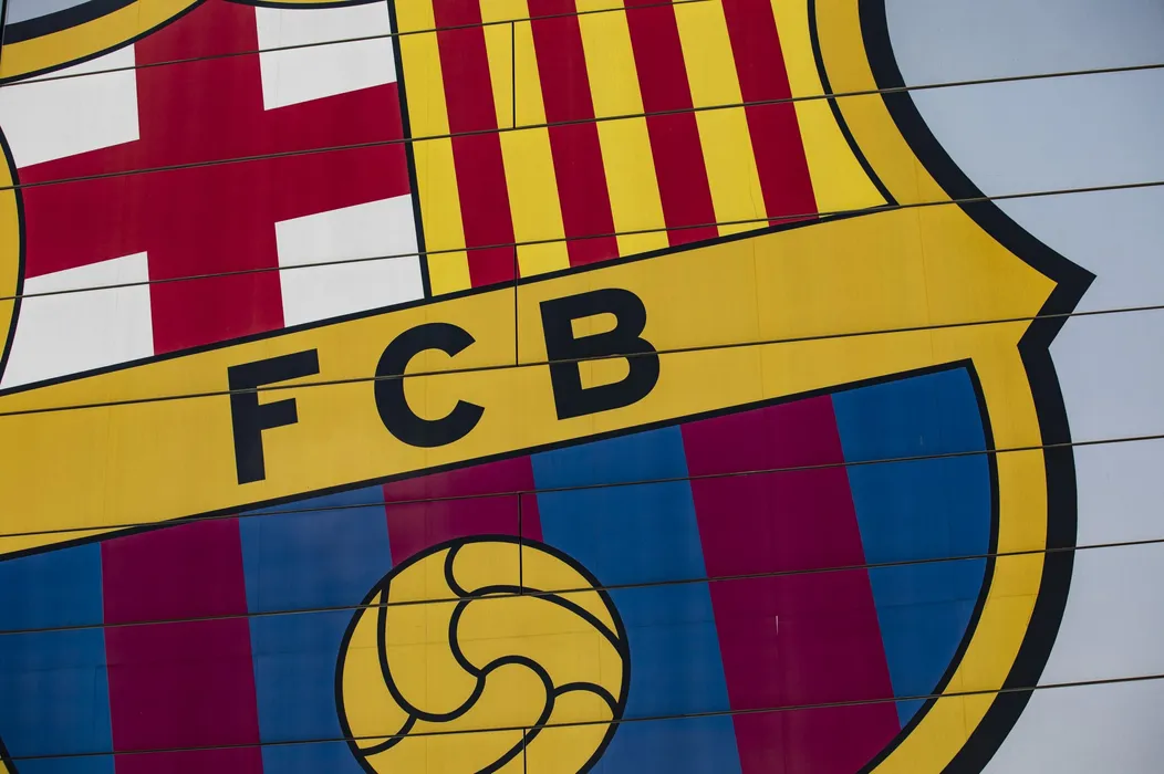 FC Barcelona logo Ciutat Esportiva Joan Gamper where FC Barcelona team of La Liga spanish football trains, in Barcelona, Spain, on May 28, 2020.