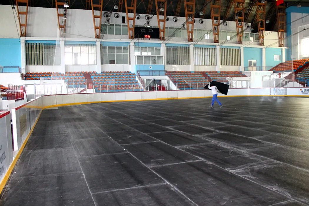 Patinoarul din Galați devine primul din țară care se poate transforma în sală polivalentă fără topirea gheții. În maximum 24 de ore se poate trece de la hochei la baschet sau handbal | FOTO
