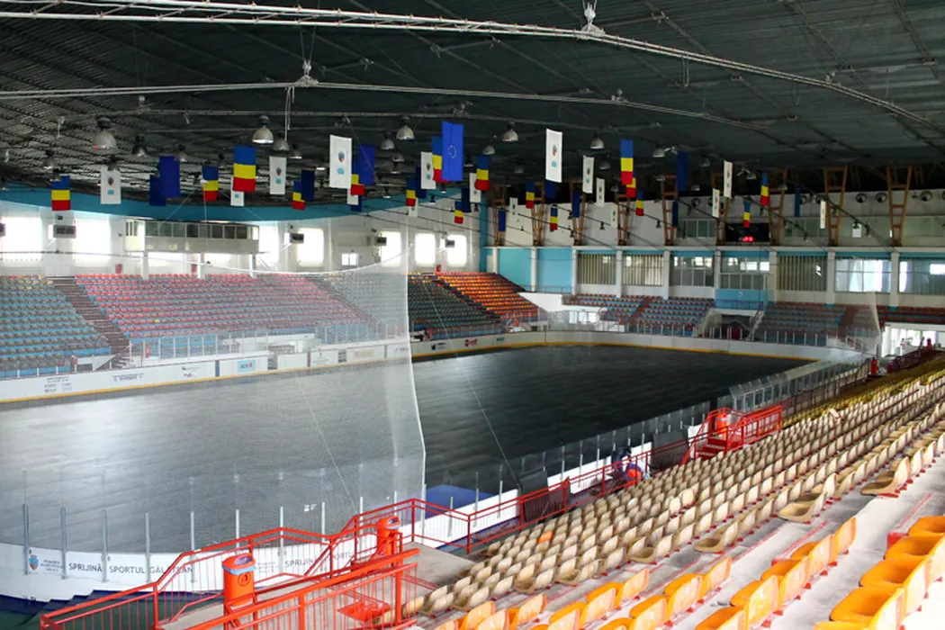 Patinoarul din Galați devine primul din țară care se poate transforma în sală polivalentă fără topirea gheții. În maximum 24 de ore se poate trece de la hochei la baschet sau handbal | FOTO