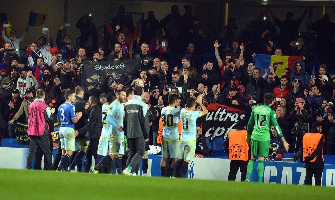 Fotbalistii stelisti saluta galeria la finalul partidei.