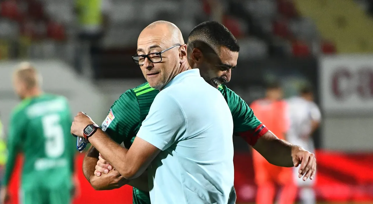Leo Grozavu il felicita pe Rachid Bouhenna dupa meciul de fotbal dintre Astra Giurgiu si Sepsi OSK Sfantu Gheorghe, contand pentru Liga 1 Casa Pariurilor, desfasurat pe Stadionul Marin Anastasovici din Giurgiu, duminica 13 septembrie 2020. © FOTO:Razvan Pasarica/SPORT PICTURES