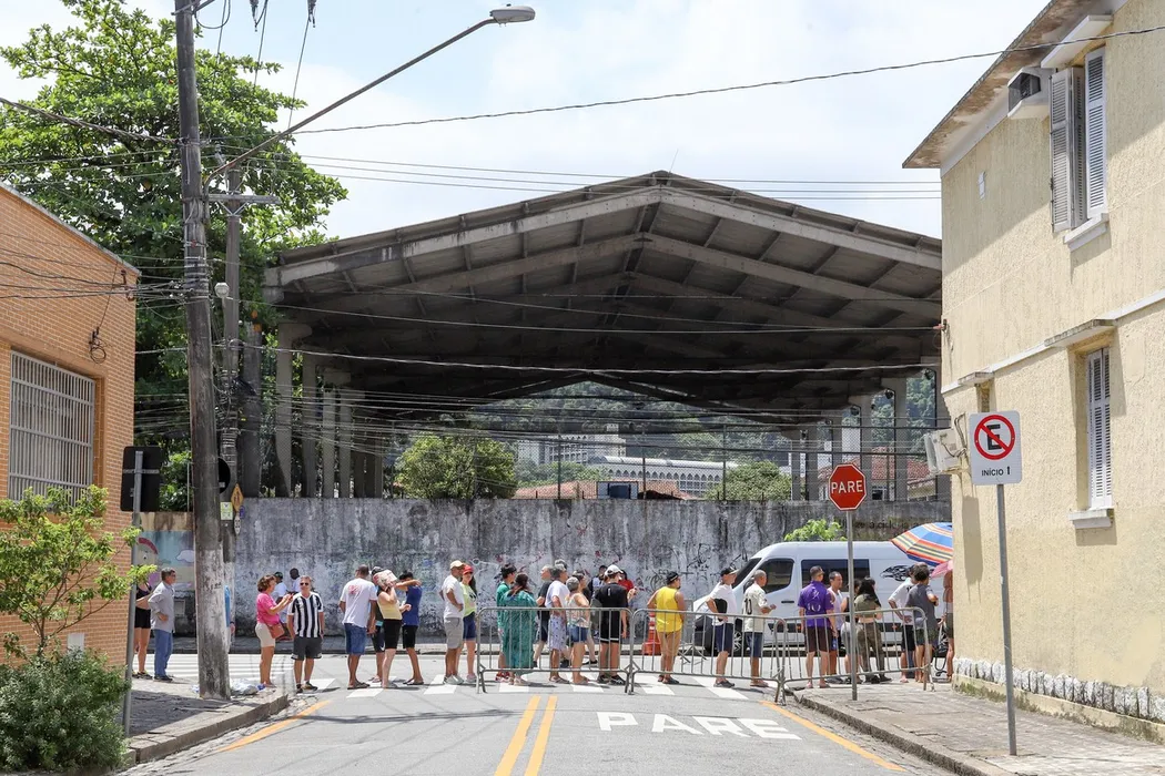 SANTOS, BRAZIL - JANUARY 02: People queue to attend the funeral ceremony of Brazilian football legend Pele at Vila Belmiro Stadium in Santos, Brazil on January 02, 2023. Fernanda Luz / Anadolu Agency,Image: 747400570, License: Rights-managed, Restrictions: , Model Release: no