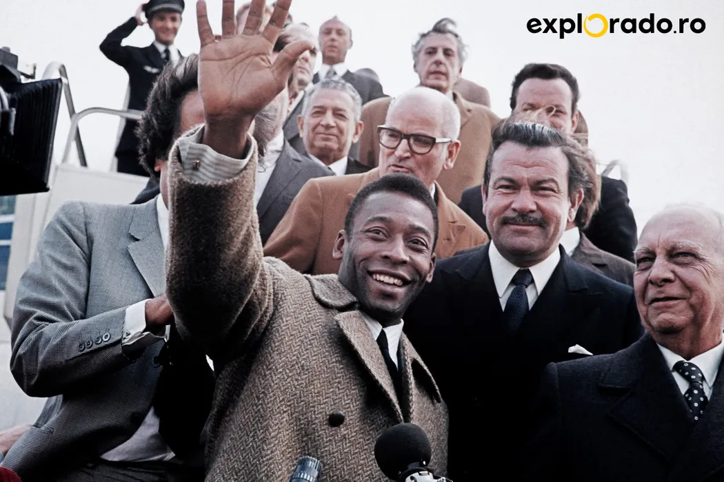 Photo taken on March 30, 1971 shows Jacques Baumel (2nd R), French Secretary of State to the Prime Minister Jacques Chaban-Delmas welcoming Brazilian forward Pele upon his arrival at Orly airport. Pelé is in France to play a match between the Santos Football Club and Marseille which will take place in Colombes the next day.,Image: 359218371, License: Rights-managed, Restrictions: , Model Release: no