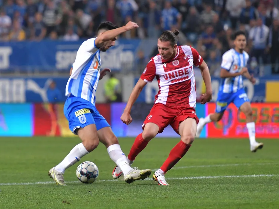 Deniz Giafer il faulteaza in careu pe Andrei Virgil Ivan in meciul de fotbal dintre Universitatea Craiova si Dinamo Bucuresti, contand pentru Liga 1 Casa Pariurilor, desfasurat pe Stadionul Ion Oblemenco din Craiova, luni 27 septembrie 2021. © FOTO:Razvan Pasarica/SPORT PICTURES