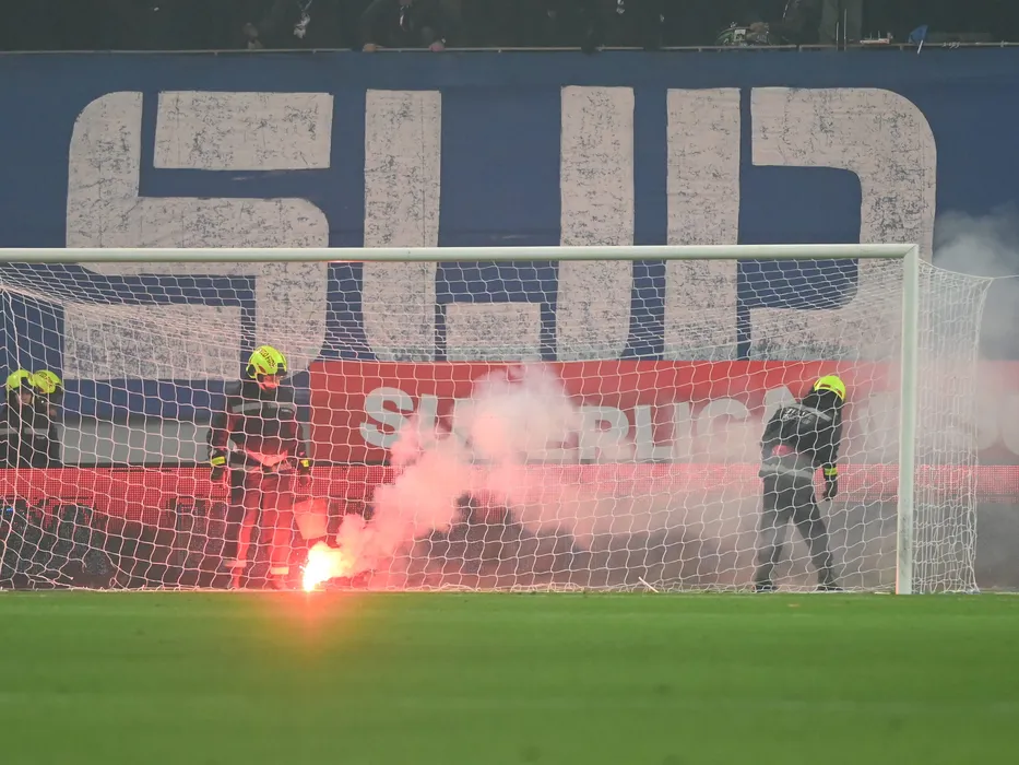 Fumigene in Peluza Sud craioveana la meciul de fotbal dintre Universitatea Craiova si FC U Craiova, contand pentru Superliga Superbet, desfasurat pe Stadionul Ion Oblemenco din Craiova, sambata 3 decembrie 2022. © FOTO:Razvan Pasarica/SPORT PICTURES