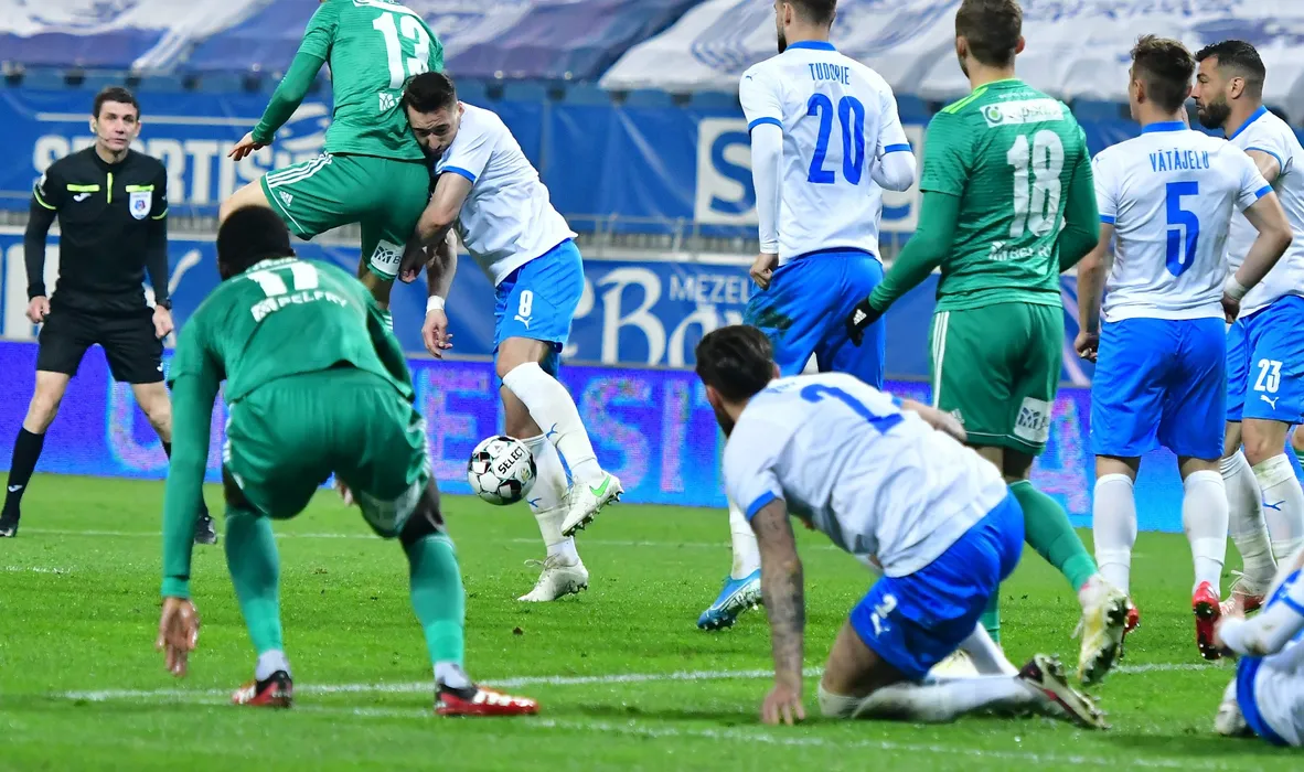 Alexandru Mateiu (C) in meciul de fotbal dintre echipele U Craiova - ACS Sepsi Osk etapa 1 Liga 1 disputat pe stadionul ,, Ion Oblemenco ,, din craiova sambata 17 aprilie 2021 . REMUS BADEA / MEDIAFAX FOTO