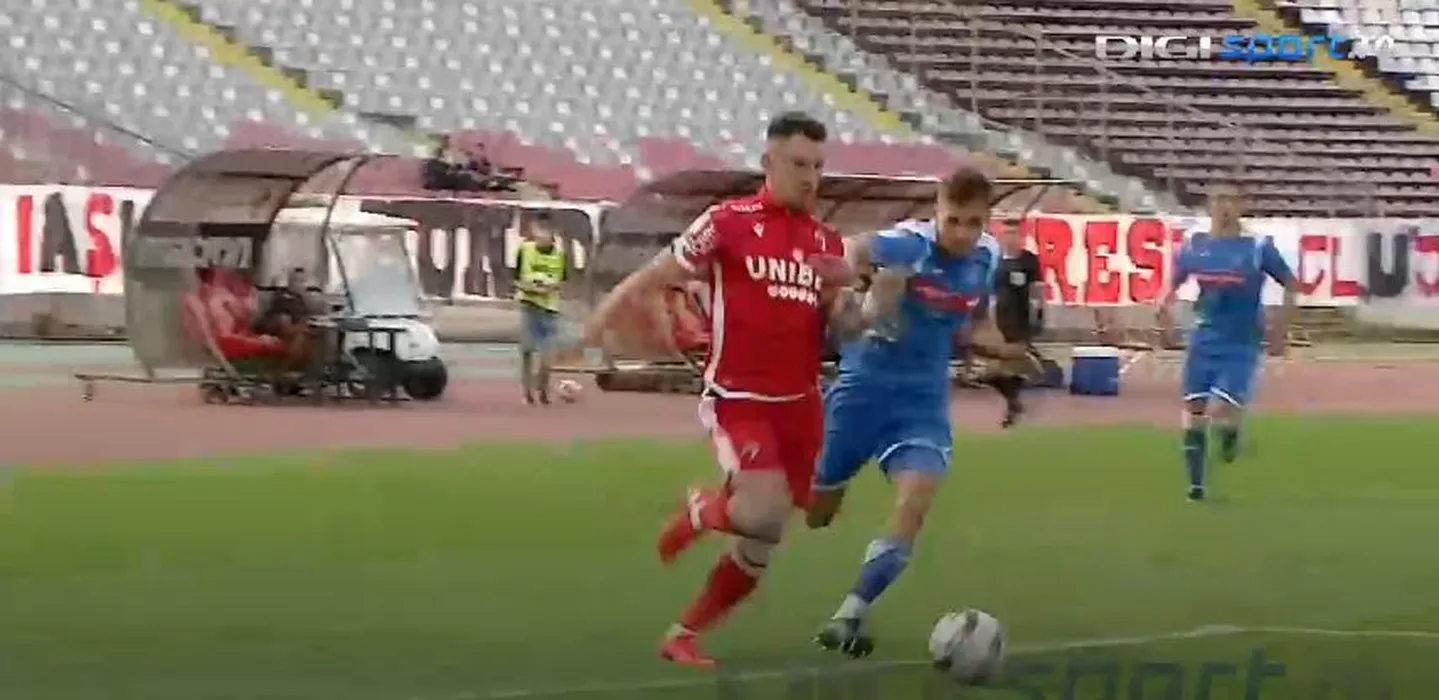 Penalty controversat obținut de Dinamo în meciul cu Poli Iași! Cum a căzut Deian Sorescu, după ce a fost atins de un adversar | FOTO