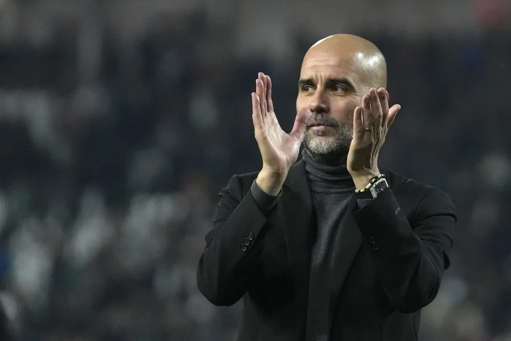 Manchester City's head coach Pep Guardiola applaud supporters at the end of the Group G Champions League soccer match between Red Star and Manchester City, at the Rajko Mitic Stadium in Belgrade, Serbia, Wednesday, Dec. 13, 2023.,Image: 829261482, License: Rights-managed, Restrictions: This content is intended for editorial use only. For other uses, additional clearances may be required., Model Release: no, Pictured: Pep Guardiola